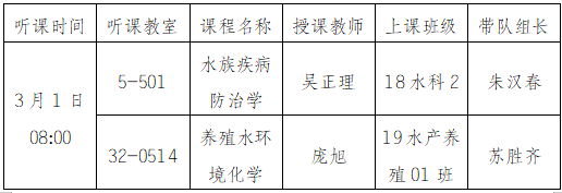 2.请检查组于3月1日上午7:50到达听课教室,做好检查记录,填写听课记录本,听课完成后请带队组长组织听课成员召开简短交流会,并将结果告知任课教师;