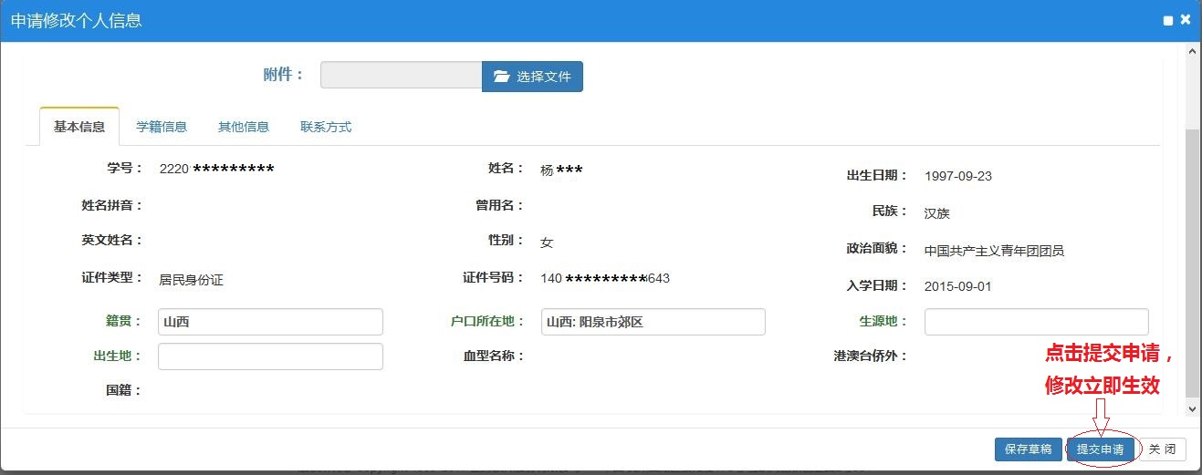 太阳成集团tyc122cc员工籍贯、户口所在地等信息教务系统修改流程