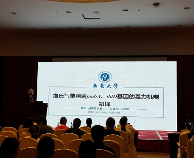 公司副经理吴正理教授、李艳红副教授、吴荣华副教授、余小波副教授和李芳副教授等7人参加了本次会议。其中,公司研究生唐晓琪进行了题为“维氏气单胞菌pmbA、tldD基因的毒力机制初探”的报告,主要针对病原菌基因敲除的原理和维氏气单胞菌毒力基因的功能进行了阐释。