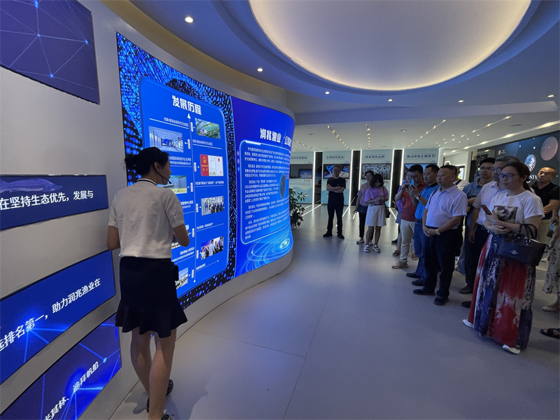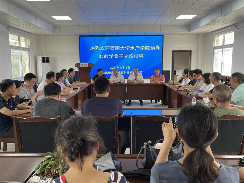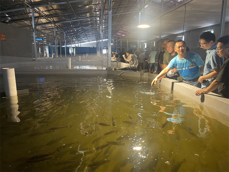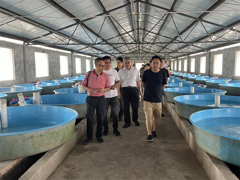 7月16日上午,朱汉春一行来到眉山伟继水产种业科技有限公司调研,教师们在伟继公司总经理张继业的带领下参观了工厂化生态循环水恒温鱼苗培育车间、集装箱生态循环水养殖区及健康水产养殖设施设备等,现场了解了工厂化生态循环水种苗培育、成鱼养殖新模式的技术理念及生态养殖效益。