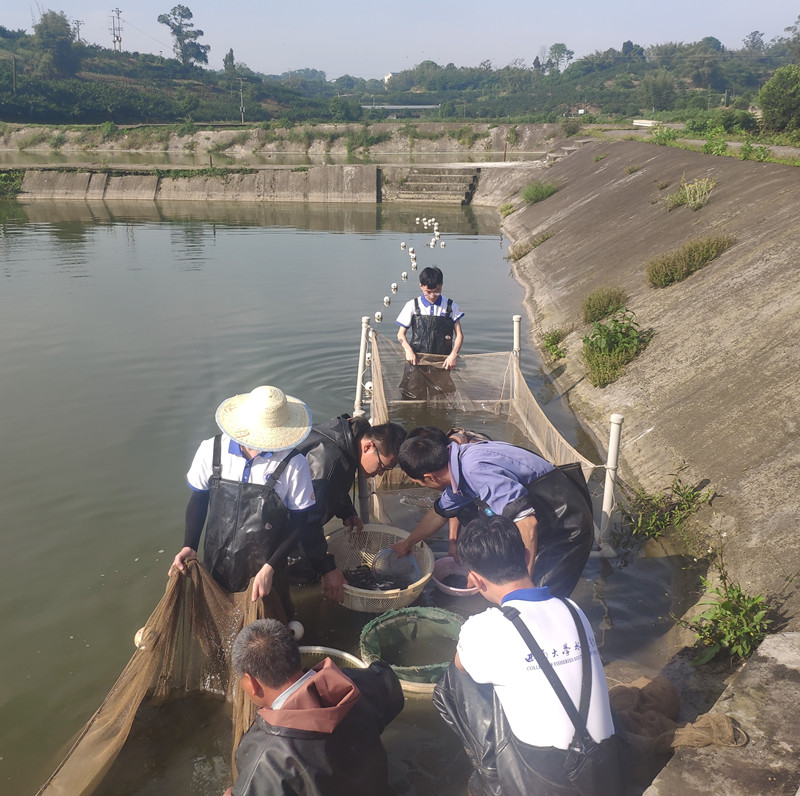 人工增殖放流是使用人工方法直接向江河湖海等天然水体投放或移入水产动物的受精卵、幼体或成体,以恢复或增加种群的数量,改善和优化水域的群落结构。实习小分队利用本次生产实习的机会,历时两天时间全程参与了鱼苗的捕捞、筛选、称重、装运以及放流,了解到一次增殖放流需要多方协作才能顺利完成。让实习小队里的每一位同学都更深刻地认识到了修复长江生态、保护长江生物多样性的重要意义。