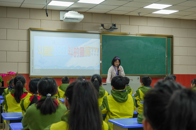 在科普宣讲中,志愿者们通过动画、图片、视频等形式,用通俗易懂的故事为小同学们缓缓打开水产世界的“美丽画卷”。小同学们屏息凝神、专注非常,不仅了解学习到众多鱼类的独特习性,并对水产知识也有了初步的认识和展现出了浓厚的兴趣。