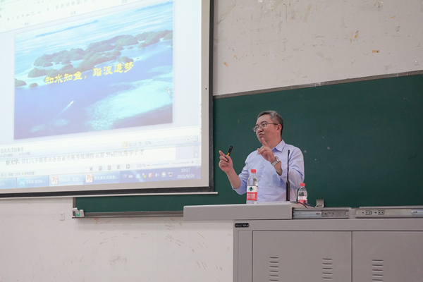 首先,在苏经理的带领下,同学们回顾了水产专业数十年的办学历史。之后,苏经理结合水产专业与其他学科关系、水产专业与生活的联系及水产专业员工的毕业去向等内容对21级新生提出殷切希望。他指出,高等教育的最终目标是引导员工“四个学会”,希望同学们奋发图强、学会交流、懂得尊重、和谐共处,在之后的学习生活中一以贯之地践行“明德博学,知行合一”的院训。