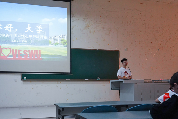 之后的讲座中,祁老师对学业发展,人际交往,情绪管理和心理资源四个方面内容作了详细阐述,运用自身经历和恰当比喻为同学们提供人际交往的众多技巧,并指出心理健康的重要性,鼓励同学们学会表达爱、维系爱,积极通过相关平台解决心理问题,最后以幽默的方式指出大学理想与现实的差距,提醒新生要树立正确价值观。
