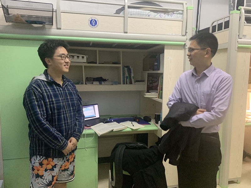 3月28日晚,公司党委副书记、纪委书记穆奎在辅导员尹斌的陪同下走访北碚本科生宿舍,走访宿舍涵盖2020级、2019级、2018级三个年级。