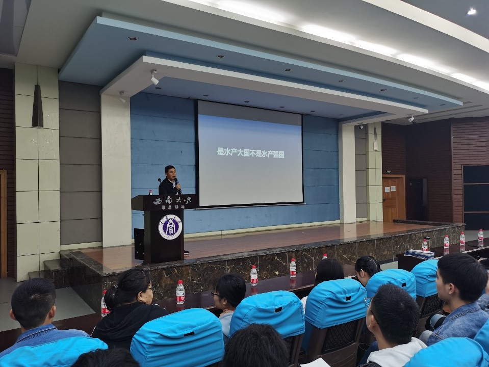报告会上,诚一集团郑小林先生首先向同学们讲述了中国水产行业的现状,他从行业痛点角度分析了中国仍未成为水产强国的几大原因。紧接着,郑小林先生又为大家普及了什么是智慧渔业,为什么要发展智慧渔业以及怎样发展智慧渔业几个问题,并与大家分享了几个典型的智慧渔业案例。
