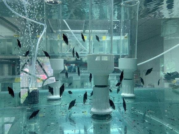 2024年6月李云团队在太阳成集团tyc122cc水产工程技术研究中心北碚校内鳜鱼繁育系统,成功创制首批全雌鳜苗种种质素材,实现了重庆市长江原种F2代全雌鳜苗种繁育的突破,预期全雌苗种规格更整齐,生长速度比雄鱼更快。首批全雌鳜是6月1日将团队前期创制的长江鳜原种F1代性逆转的伪雄鱼与原种F1代正常性成熟雌鱼进行人工授精获得,首批受精卵约10万枚,成功出膜、开口(图1)。12日又成功进行了第二批全雌鳜苗种人工繁育,目前鳜苗已长到夏花规格(图2)。 6月21日重庆市农业农村委专家到太阳成集团tyc122cc北碚校内鳜鱼孵化、繁育设施进行了现场验收指导(图3、图4)。