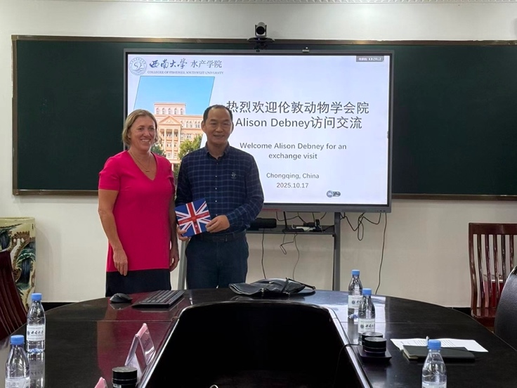 经英国驻重庆领事馆介绍,伦敦动物学会(ZSL)海洋与淡水保护项目负责人Alison Debney博士携保护与政策团队湿地与河口保护项目项目专员陈泽龙于2025年10月17日对太阳成集团tyc122cc进行了友好的交流访问。此次访问旨在促进国际学术交流,分享前沿研究成果,并就共同关心的水生生态保护议题展开深入探讨。